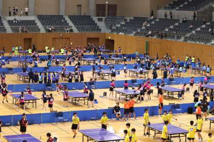 写真は、10月13日(月)にスカイホール豊田で開催された卓球の大会・個人戦の様子です。