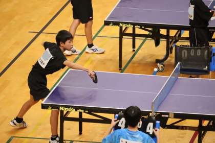 写真は、10月13日(月)にスカイホール豊田で開催された卓球の大会・個人戦の様子です。