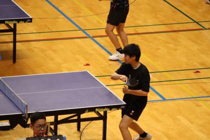 写真は、10月13日(月)にスカイホール豊田で開催された卓球の大会・個人戦の様子です。