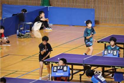 写真は、10月13日(月)にスカイホール豊田で開催された卓球の大会・個人戦の様子です。