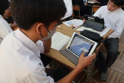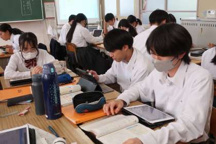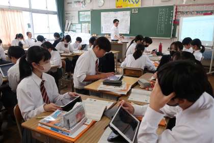 「モアイは語る ー地球の未来」という説明文の単元で、「作者の意見は適切か不適切かを考えてみよう」をテーマに、それぞれの意見を交換していました。