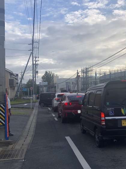 雨予報のせいか、車の数が多く、長い渋滞ができていました。