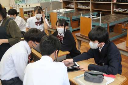「条件に合うデザインを考えよう」をテーマに、配付された動物の模様を参考にしながらデザインの学習に取り組んでいました。