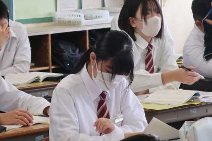 古今和歌集の学習で、それぞれの作品の情景を確認しながら、作者の気持ちを考えていました。