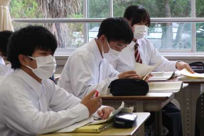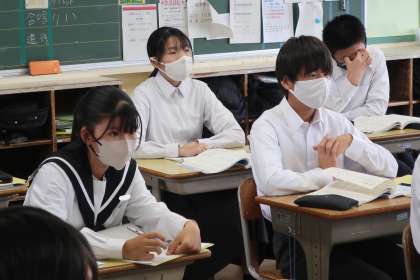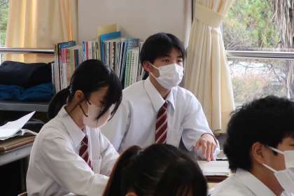 古今和歌集の学習で、それぞれの作品の情景を確認しながら、作者の気持ちを考えていました。
