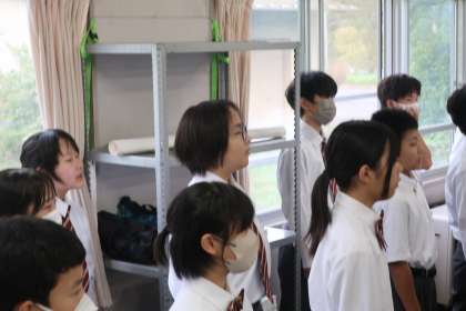 合唱コンで発表する学年合唱「校歌」を練習していました。複数のクラスで歌い合い、お互いを刺激し合っていました。朝一番からやる気満々といった感じでした。