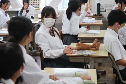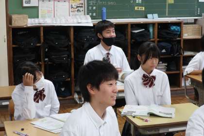 単元のまとめのテストに取り組んだあと、理解が不十分だった部分を克服しようと、仲間同士でアドバイスをし合っていました。