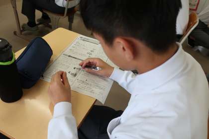 「読む力」をつけるため、情景(空の様子の描写)から心情の変化を感じ取ることをポイントに、プリントで学習していました。