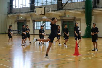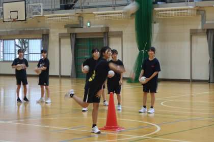 市内のクラブチームのメンバーとの合同練習です。地域指導者のキレのある指導の下、楽しみながらもお互いを高めあうために取り組めていました。