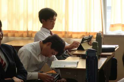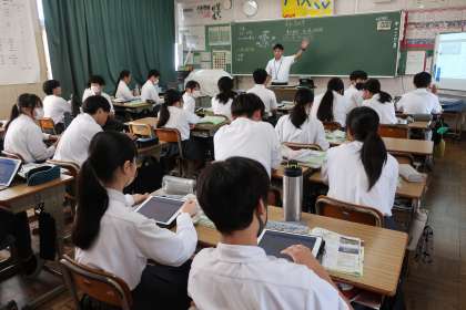 2年2組の社会・地理分野の授業の様子です。