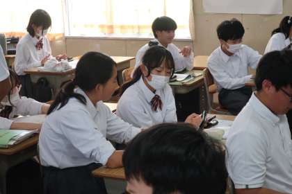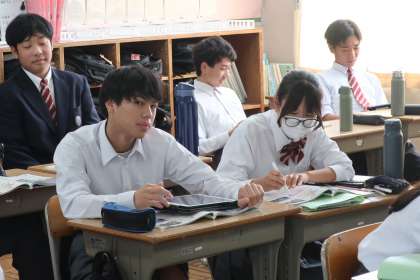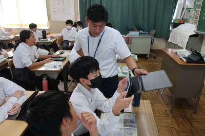 2年2組の社会・地理分野の授業の様子です。