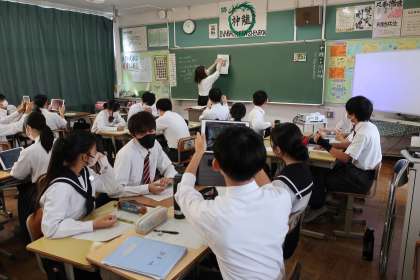 「世界一のブランコのひもの長さは何mだろう」をテーマに2次関数の問題に挑戦していました。