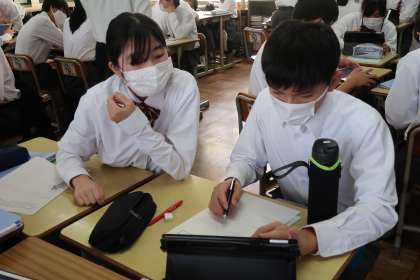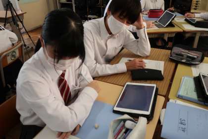 「世界一のブランコのひもの長さは何mだろう」をテーマに2次関数の問題に挑戦していました。