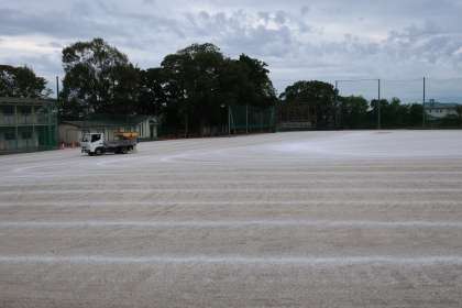 今日は、運動場にも散布されました。その量、なんと、10トン以上。