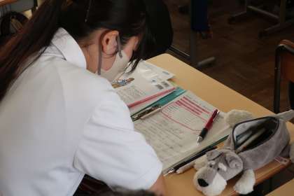 疑問詞を使った文の作り方を学び、いくつかの英作文に取り組んでいました。