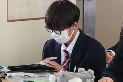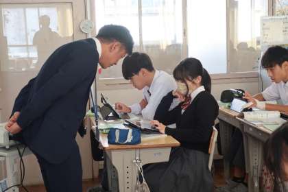 2年4組の社会・地理分野の授業の様子です。