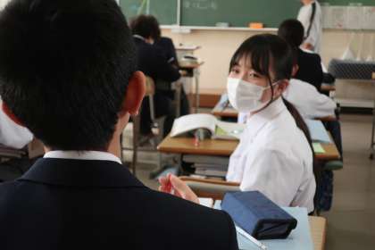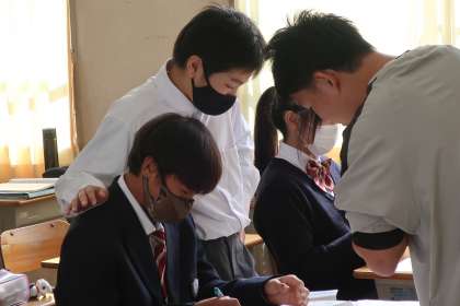「関数のグラフの書き方・読み方をマスターしよう」をテーマに、仲間の考えを聞きながら、理解を深めようと真剣に学習に臨んでいました。