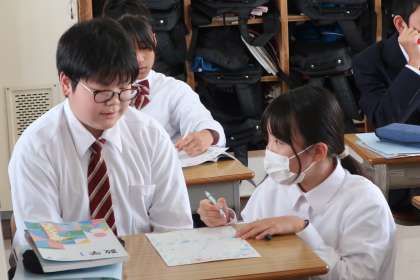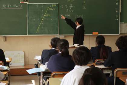 「関数のグラフの書き方・読み方をマスターしよう」をテーマに、仲間の考えを聞きながら、理解を深めようと真剣に学習に臨んでいました。
