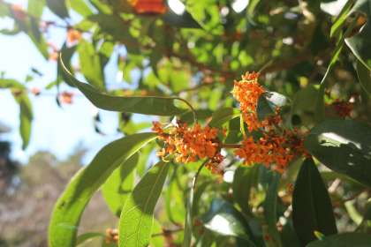 また、キンモクセイの香りには魔よけの効果があるとされ、神社やお寺に植えられています。風水でも、キンモクセイを庭に植えると運気がアップするといわれています。