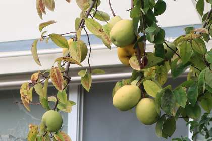 カリンは、美しいピンク色の花を咲かせ、梨に似た実を付けることから、「カリン(=花梨)」と言われるそうです。また、たくさんの花を咲かせる様子から、「豊麗」や「優雅」といった花言葉もあるそうです。また、「(金を)借りん」という語呂合わせから商人にとって縁起木とされ、「商売繁盛」という花言葉もあるそうです。