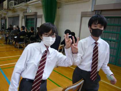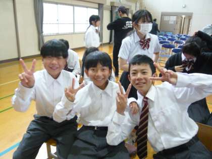 休憩時の1年生。初めての合唱コンを満喫しています。