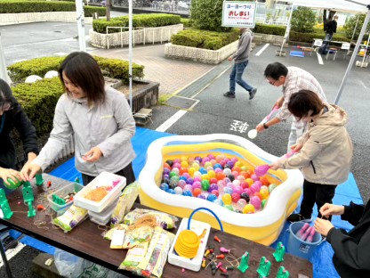 父母教師会有志は、青少年育成会のブースで水風船釣りを盛り上げました!