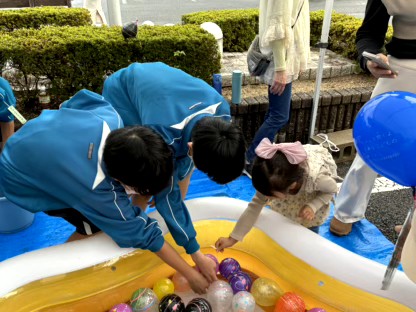 父母教師会有志は、青少年育成会のブースで水風船釣りを盛り上げました!