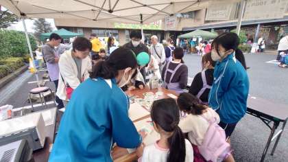 ジュニアクラブの1・2年生の皆さんが、プラ板作りやゲームの補助、食品販売のお手伝いをしてくれました。小さな子に、プラ板の作り方を優しく教えてくれたり、素敵な笑顔で、お客さんの対応をしたりと大活躍でした。