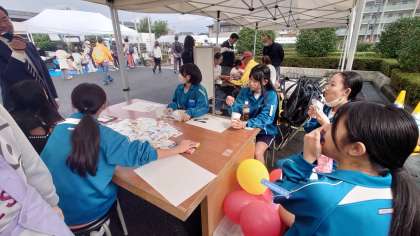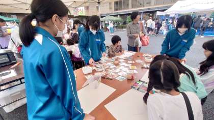 ジュニアクラブの1・2年生の皆さんが、プラ板作りやゲームの補助、食品販売のお手伝いをしてくれました。小さな子に、プラ板の作り方を優しく教えてくれたり、素敵な笑顔で、お客さんの対応をしたりと大活躍でした。