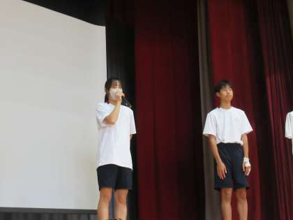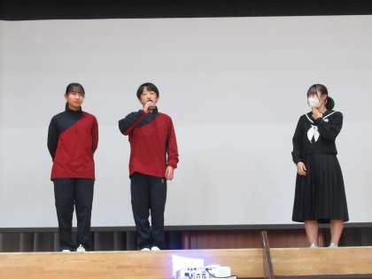 後期生徒会役員が会の進行全般を行いました。MC、モデル、インタビュアーなど、全校生徒の参加も考えた内容で、会はたいへん盛り上がりました。