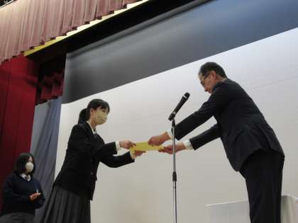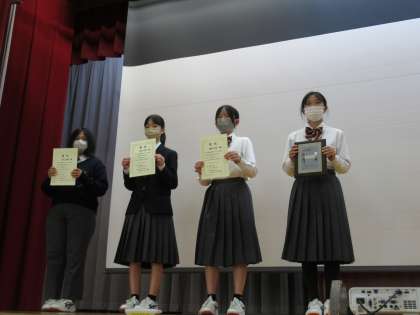*マークデザインに応募してくれた生徒たちの表彰です。