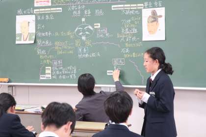 「全国統一につながった政策は何だろう」をテーマに、織田信長と豊臣秀吉の政策を比較しながら学習が進められていました。