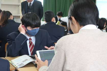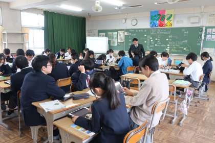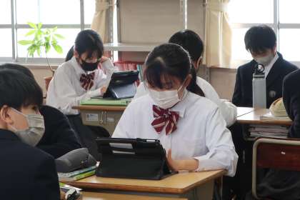 「中部地方の産業を支えている最も大切な要素は何だろう」をテーマに、地形・気候・技術などの面からそれぞれが考えをもち、グループで共有していました。