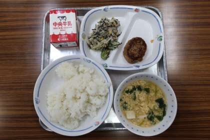 11/25 今日の給食 公開日 2025/11/25 更新日 2025/11/25 特別活動 今日の献立は ————— かきたま汁、ひじきサラダ、ハンバーグのおろしソースかけ、ごはん、牛乳 でした。 *エネルギー:815kcal たんぱく質:31.0g