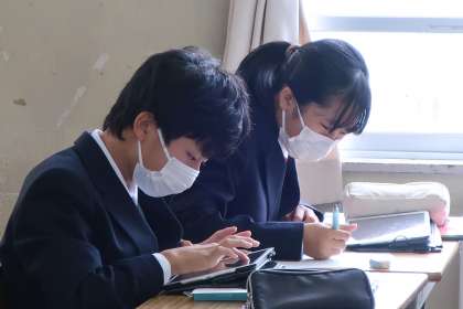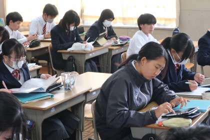 「ユニバーサルデザインを取り入れた学校について伝え合おう」をテーマに、表現を工夫した英作文に取り組んでいました。