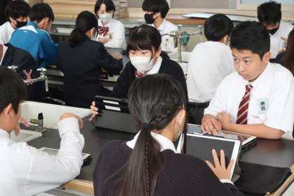 「みそ汁の豆腐はどうして浮くのか」をテーマに、体積、質量、温度、濃度などを意識した実験を行い、その結果をまとめていました。
