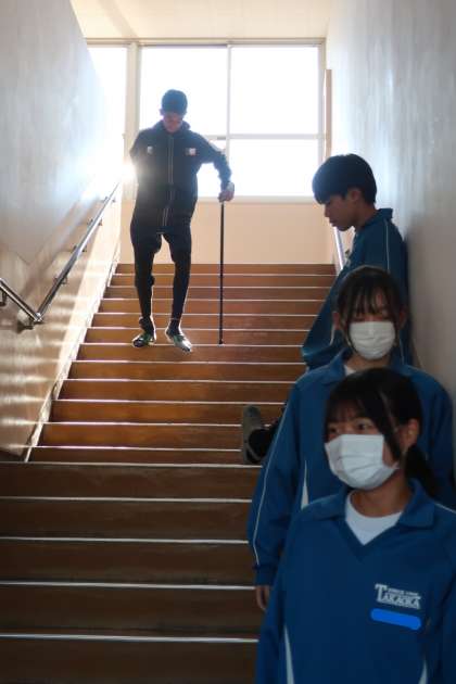 「様々な立場の高齢者と、どのようにかかわったらよいか考えよう」をテーマに、疑似体験を通して考えをまとめていました。