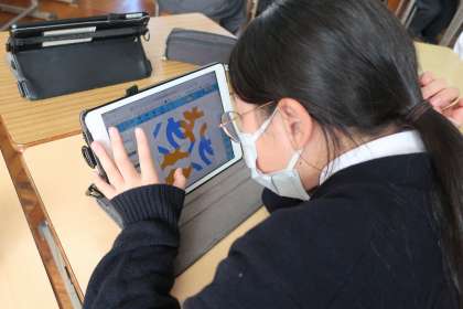 「個々の模様をどうすると意味や秩序のある模様にすることができるだろう」をテーマに、それぞれが考えた模様のよさを感じたり、組み合わせの工夫を話し合っていました。