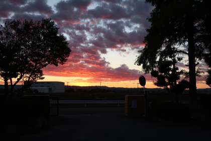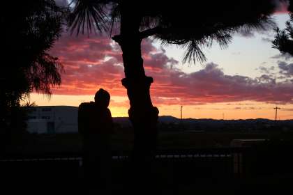 日の出前、雲の下側が赤く染まってとても幻想的です。