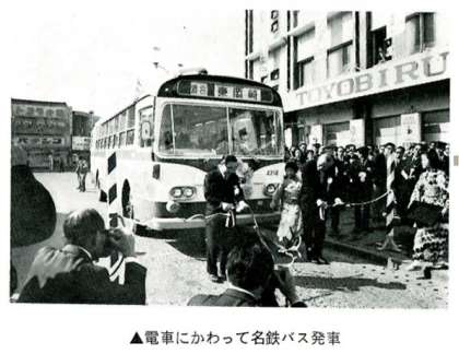 ・下…当時の豊田市(電車に変わって名鉄バス発車)