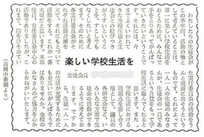 ・中…学校生活・生徒会長のことば(高岡中新聞より)