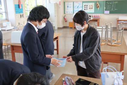 1,2学級の家庭科の授業の様子です。