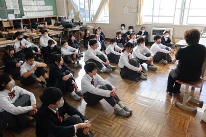 落ち着いた雰囲気の中、定刻どおりに始まり、どの生徒も話の内容を想像しながら、真剣に命耳を傾けていた姿が印象的でした。
