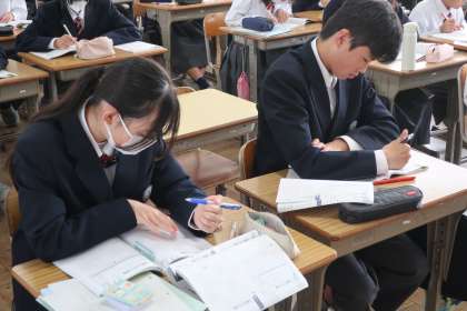 翌々週から始まる定期テストに向け、出題範囲の総復習です。大きな行事が終わった今日から、一気に学習モードに変えていきます。