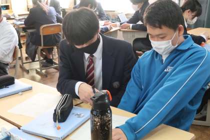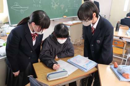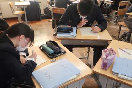 図形と相似の学習で、「平行な直線を含んだ図形の問題に挑戦」をテーマに、多くの演習問題に取り組んでいました。