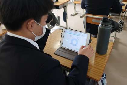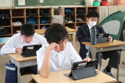 学習用タブレットを活用し、各自のペースや課題にそって学習を進めていました。