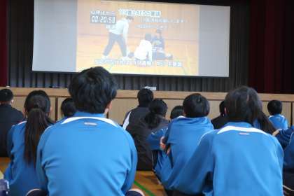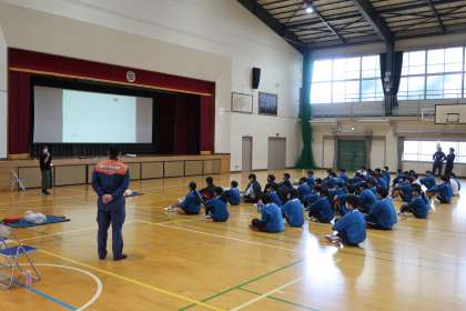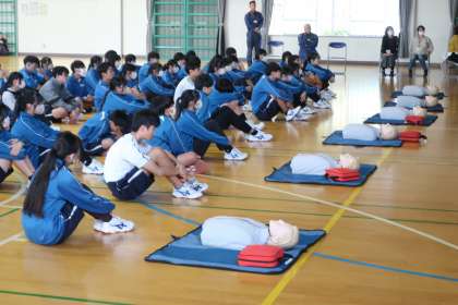 本日の午後、2年生を対象とした「応急手当講習会」が体育館で行われました。