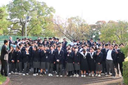 本日の午後、3年生は卒業アルバム用の写真撮影が行われていました。学年集合写真をはじめ、各クラスが希望の場所へ行っての撮影も行われていました。