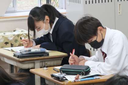 定期テストに向けて、学習した内容の総復習です。各自の学習方法で、授業を思い出しながら取り組んでいる様子が伝わってきました。