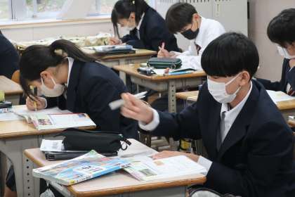 定期テストに向けて、学習した内容の総復習です。各自の学習方法で、授業を思い出しながら取り組んでいる様子が伝わってきました。